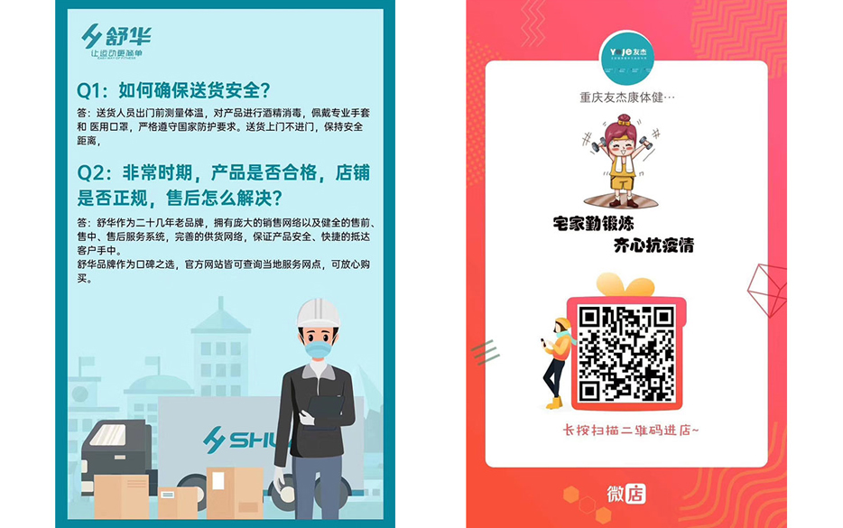 疫情期间,防护工作更是半点马虎不得,重庆友杰从上货运输到上门安装,工作人员全程佩戴口罩,每个运输节点都安全消毒,让你疫情期间购物不再有后顾之忧。为了你在家也能安全锻炼,我们是认真的!!
