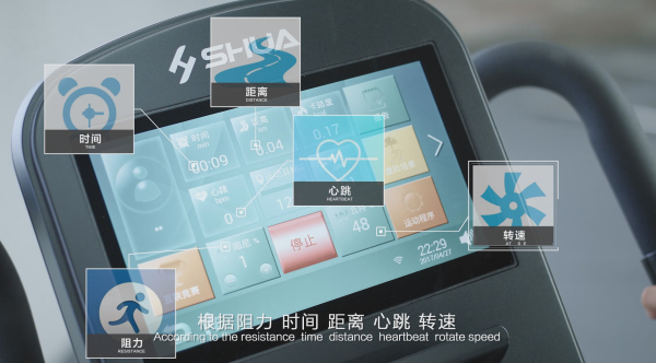 在舒华智能有氧健身设备上,用户可根据阻力、时间、速度、卡路里设定运动目标,掌握健身节奏,还可根据身体信息和健身需求定制选择运动处方,科学高效健身。