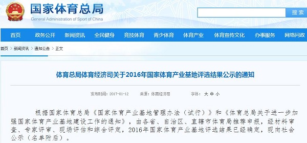 据悉,本次评选是由各省、自治区、直辖市体育局推荐申报,经材料审查、专家评审、现场评估和综合评定。其中包括11个国家体育产业示范基地、22个国家体育产业示范单位、12个国家体育产业示范项目。