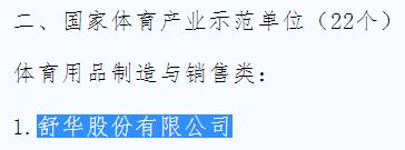 2017年1月12日,国家体育总局下发《国家体育总局体育经济司关于2016年国家体育产业基地评选结果公示的通知》,这一《通知》向社会各届公布了2016年国家体育产业基地评选结果,根据《国家体育产业基地管理办法(试行)》和《国家体育总局关于进一步加强国家体育产业基地建设工作的通知》,经体育总局批准认定,并公示无异议,2016年国家体育产业基地评审结果正式确定。国家体育总局已于2月6日下达批复,正式命名新一批11个国家体育产业示范基地,正式认定新一批22个国家体育产业示范单位和12个国家体育产业示范项目。舒华股份有限公司成为“国家体育产业示范单位”!